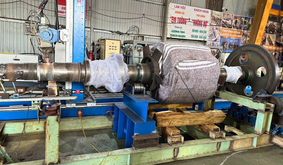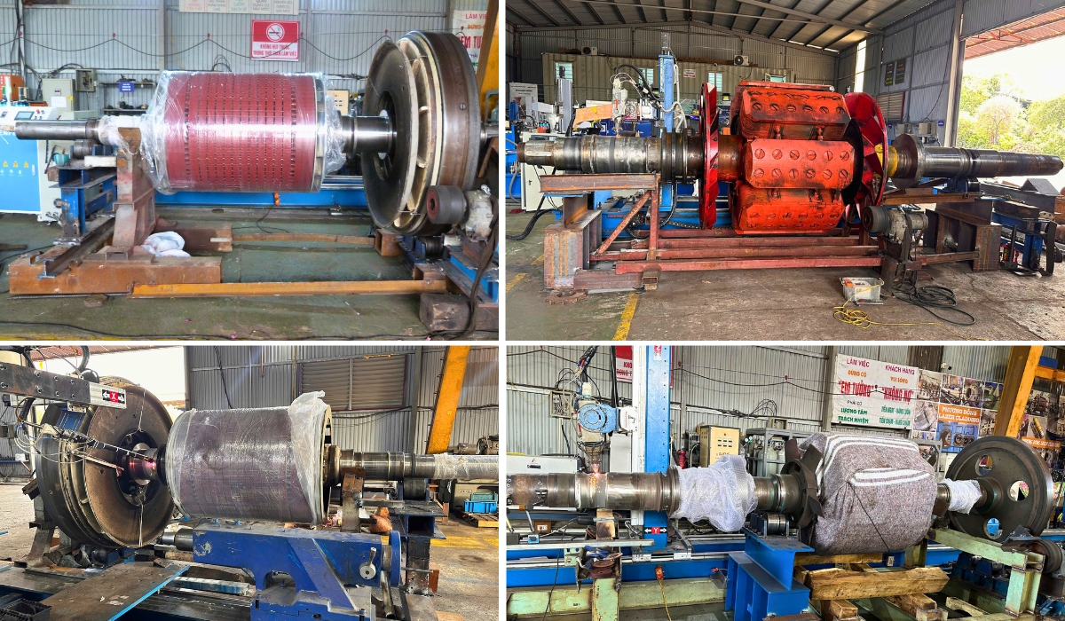 Below are some actual images of the generator rotor repair process using Laser Cladding technology at Phuong Dong Industry.
