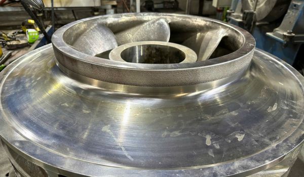 This process restores the impeller to its original geometry while significantly increasing durability and service life compared to traditional welding methods.